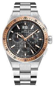 APPELLA  Мужские швейцарские часы, кварцевый механизм, сталь, 41 мм