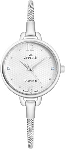 APPELLA  Женские швейцарские часы, кварцевый механизм, сталь, 30 мм